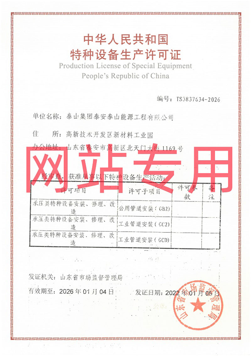 特種設(shè)備安裝改造維修許可證(壓力管道)